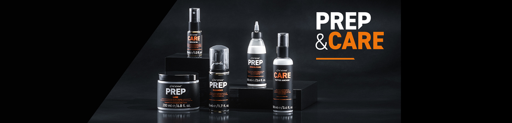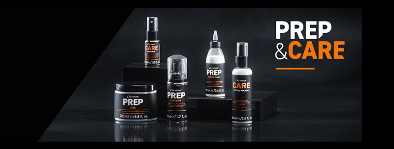 Cinco produtos, um objetivo: cuidados da pele para tatuagens. Esta gama de cuidados de pele para tatuagens tem como objetivo curar a pele desde o início, durante e após a tatuagem. 100% VEGAN.